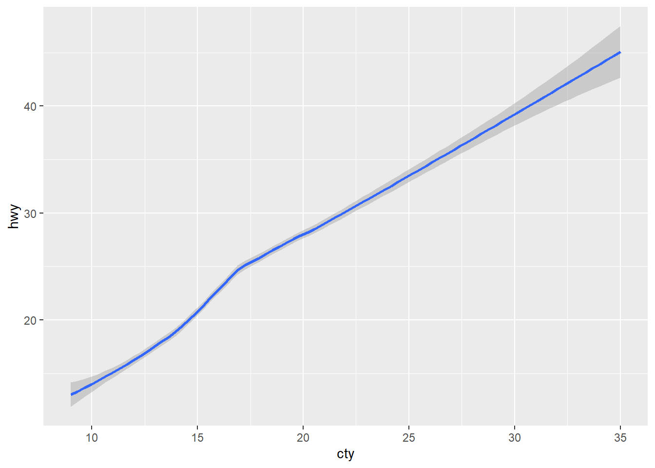 ggplot(mpg, aes(cty, hwy))+geom_point()